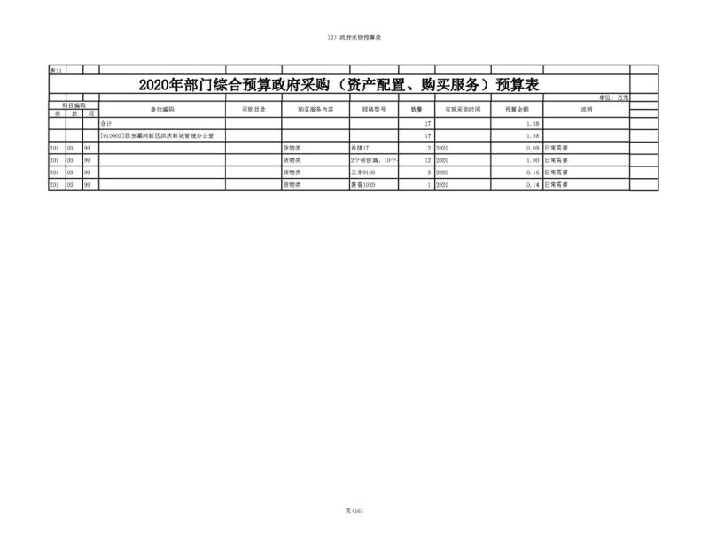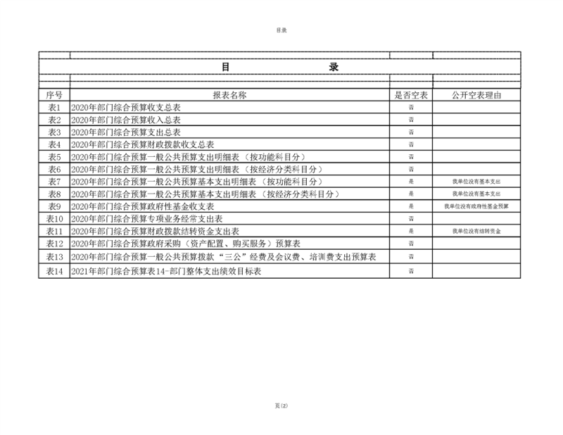 2020年部门预算公开目录