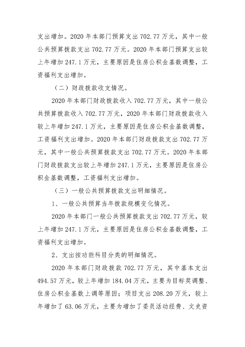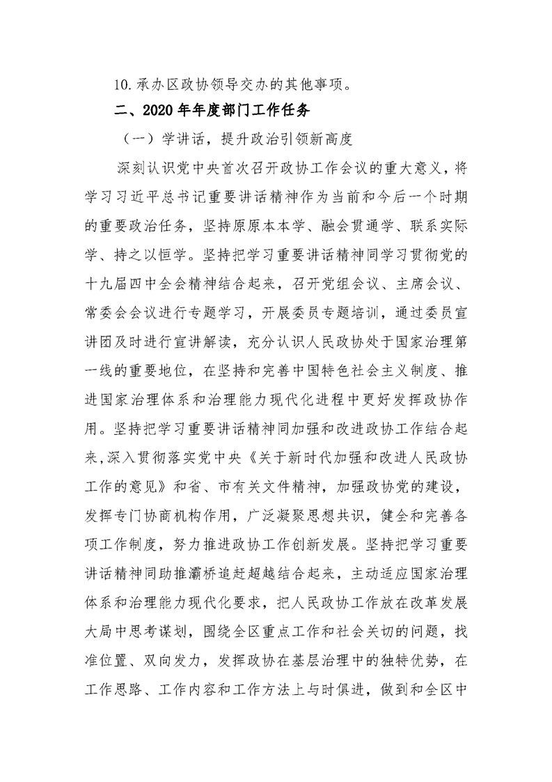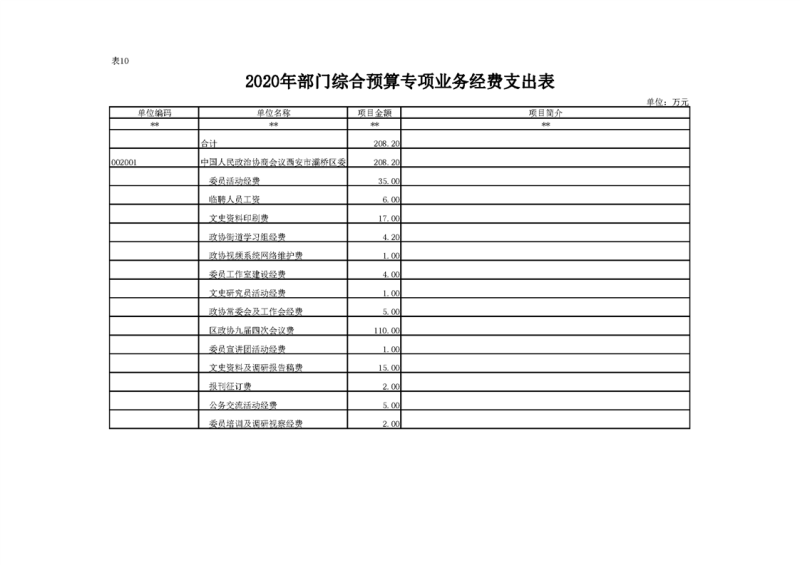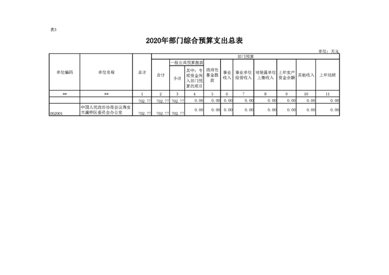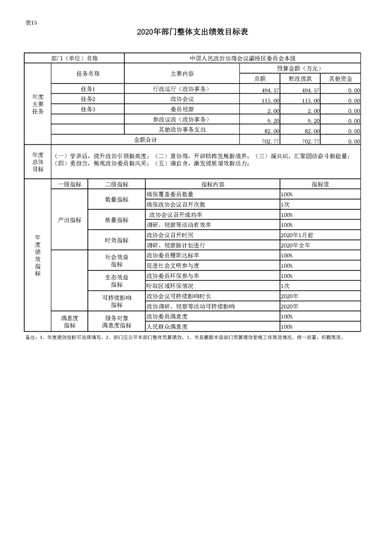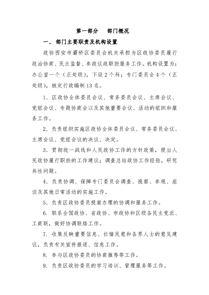 政协灞桥区委员会办公室2020年部门综合预算说明