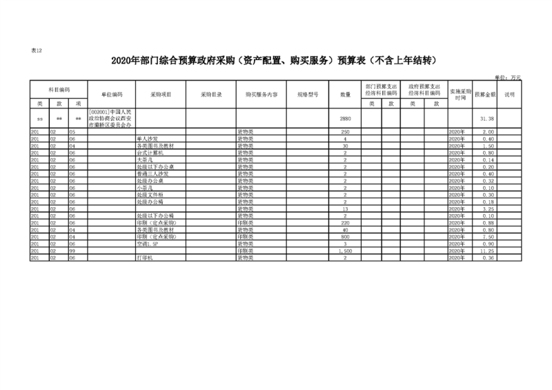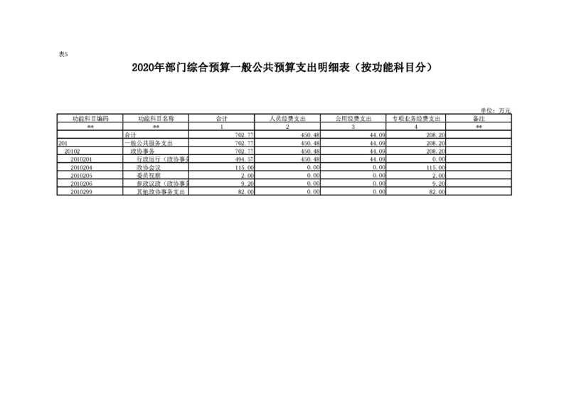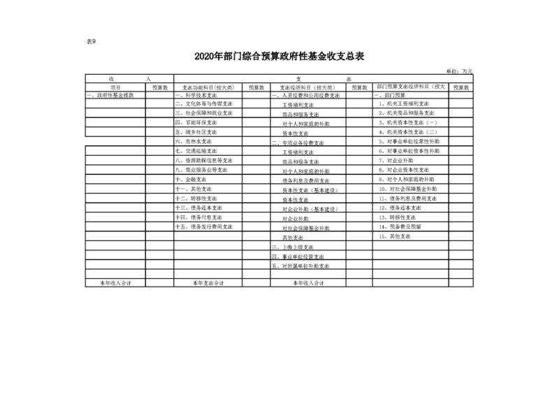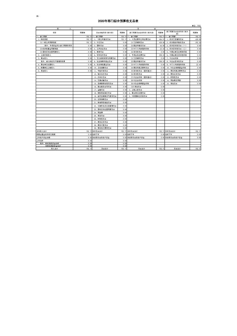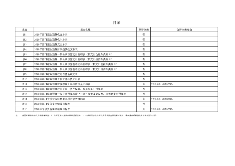 2020年部门预算公开目录