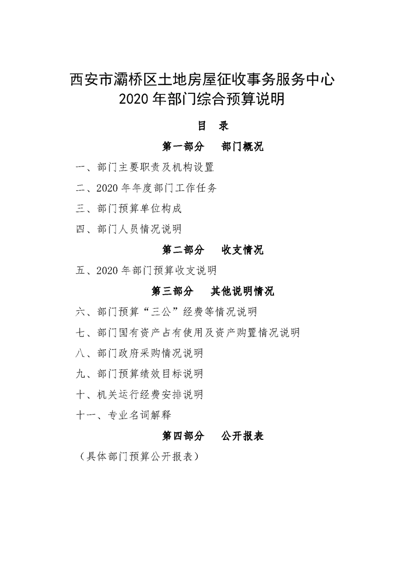 灞桥区土地房屋征收事务服务中心2020年部门综合预算说明