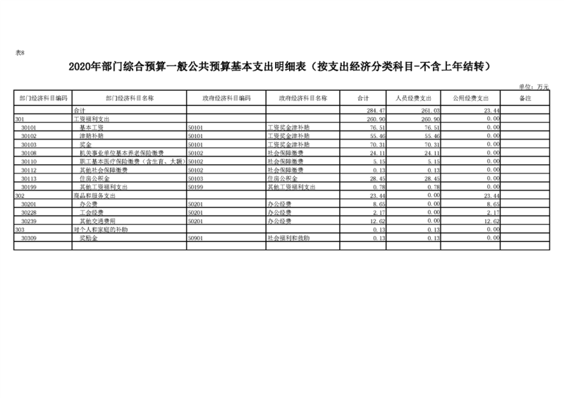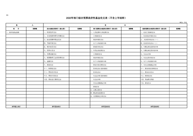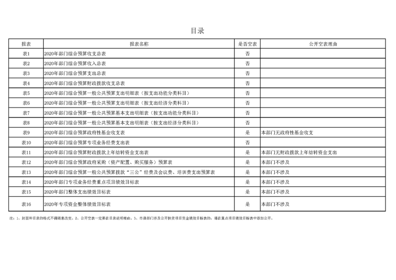2020年部门预算公开目录