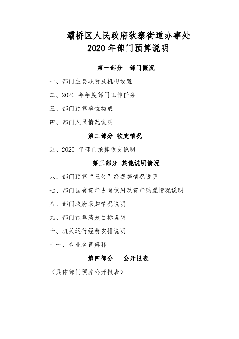 灞桥区人民政府狄寨街道办事处2020年部门综合预算说明