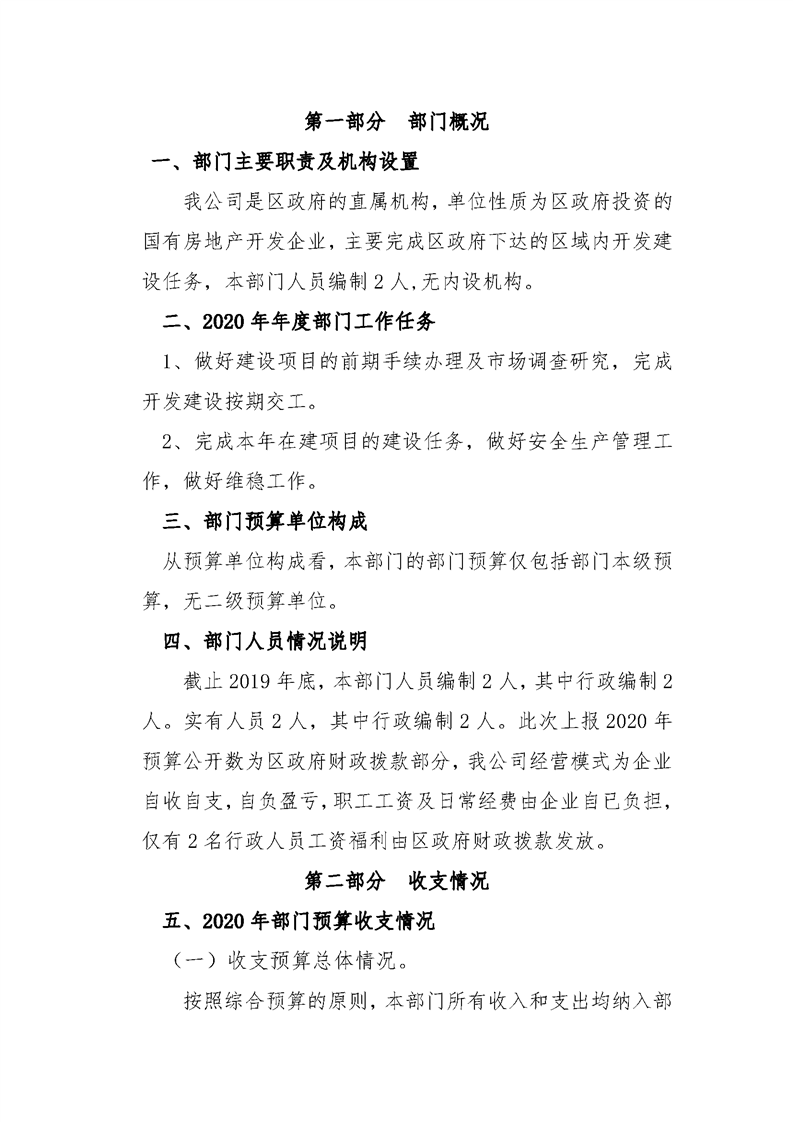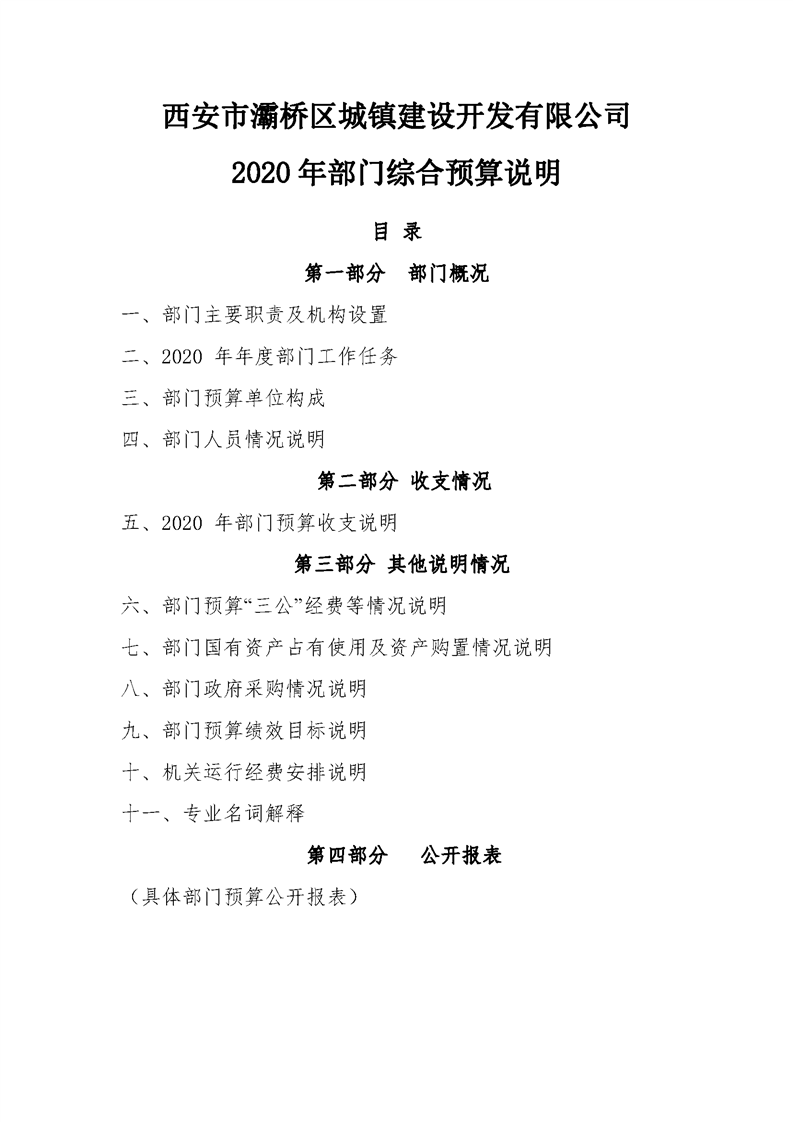 灞桥区城镇建设开发有限公司2020年部门综合预算说明