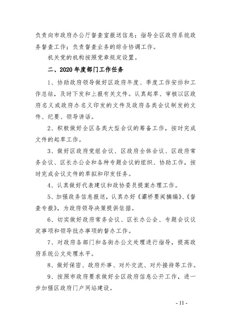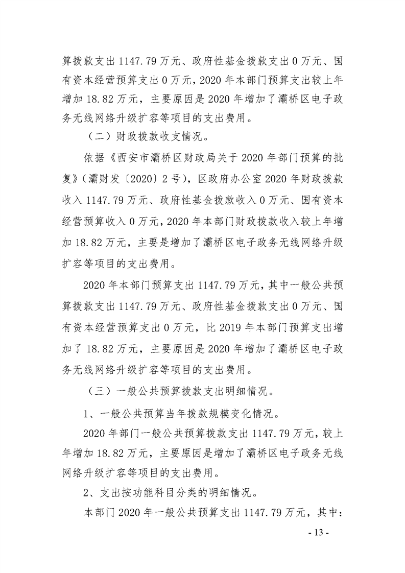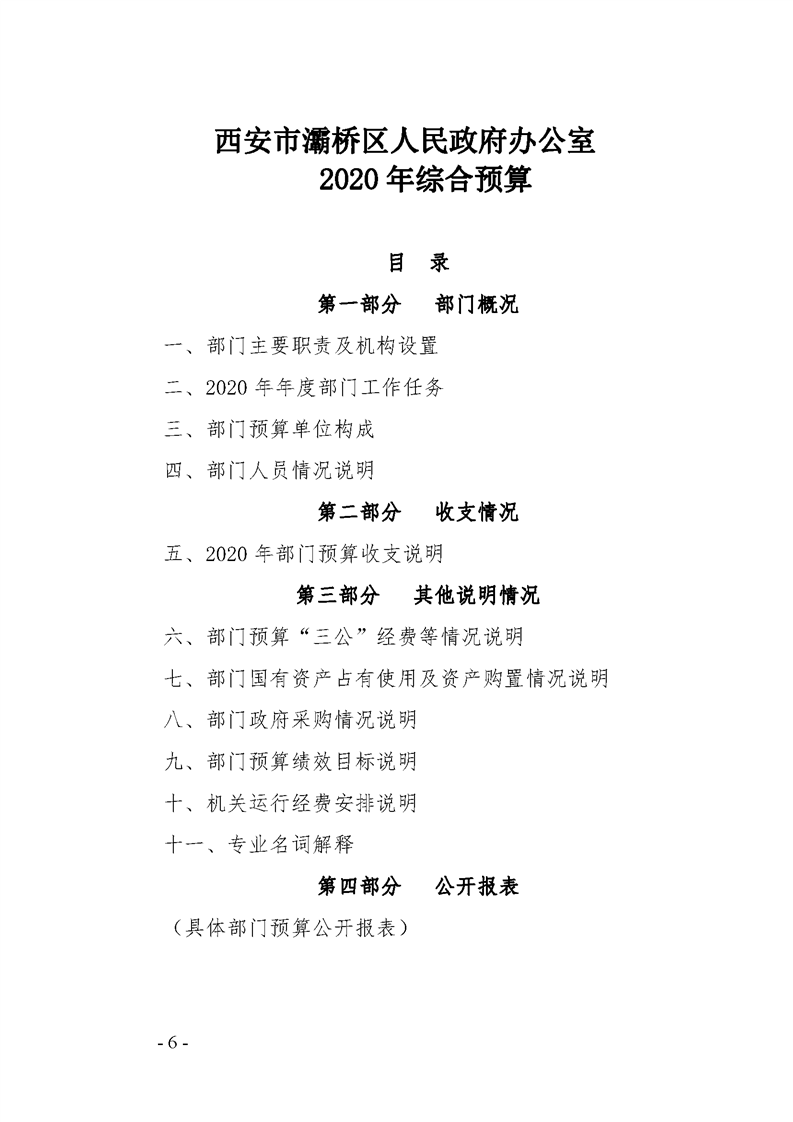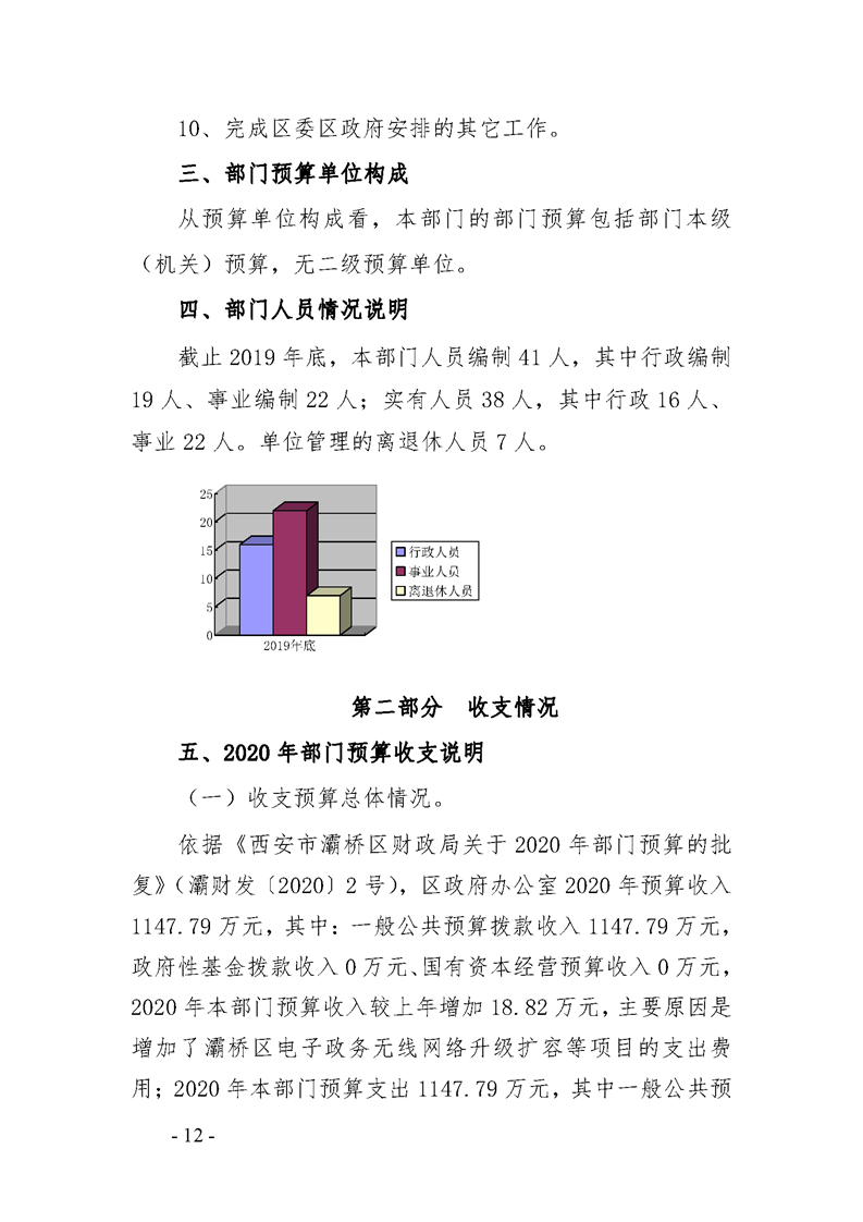 灞桥区人民政府办公室2020年部门综合预算说明