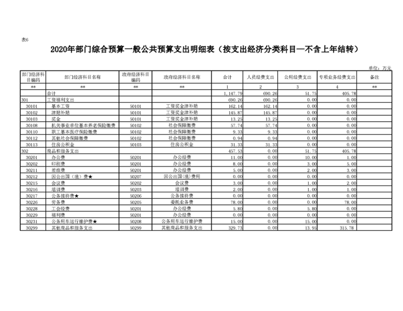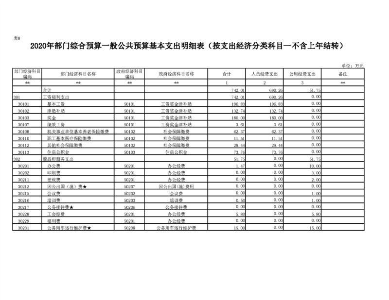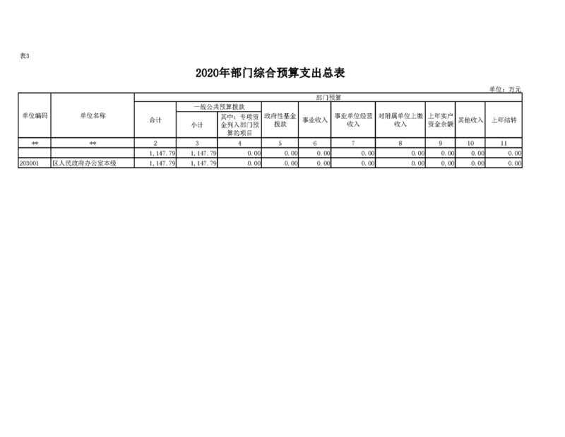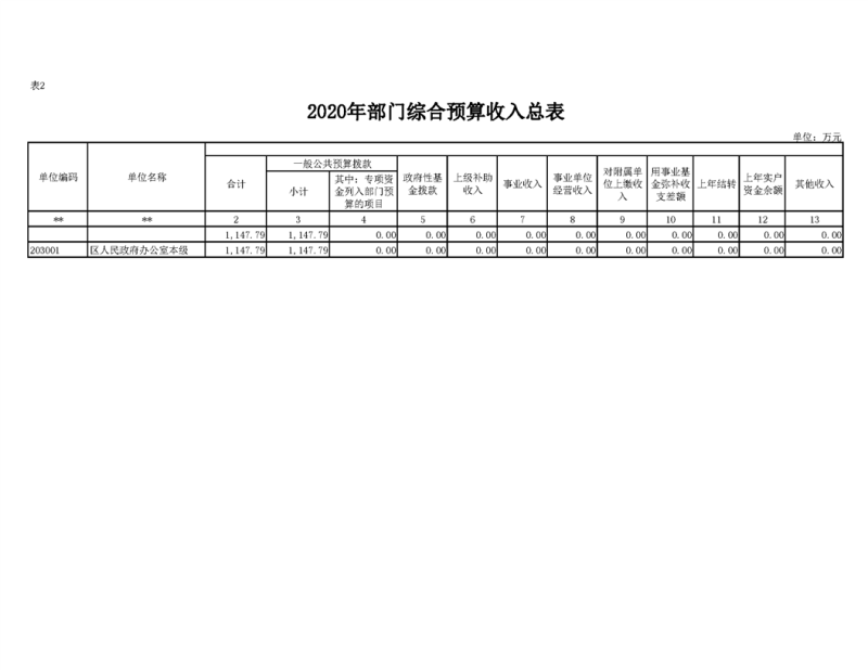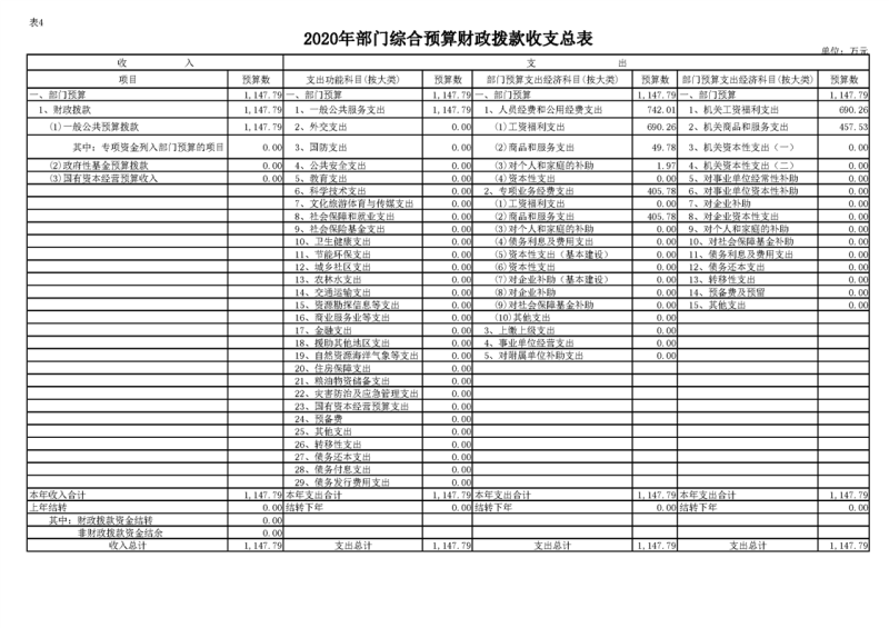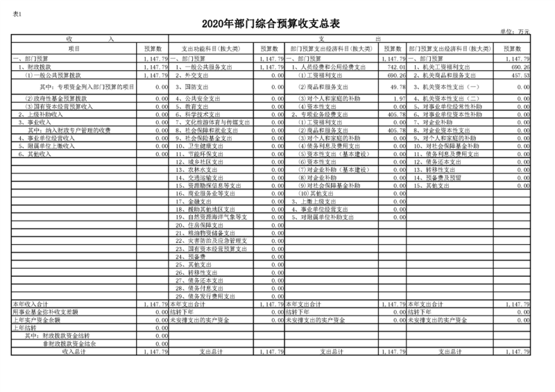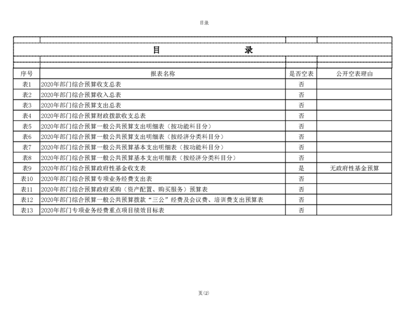 2020年部门预算公开目录