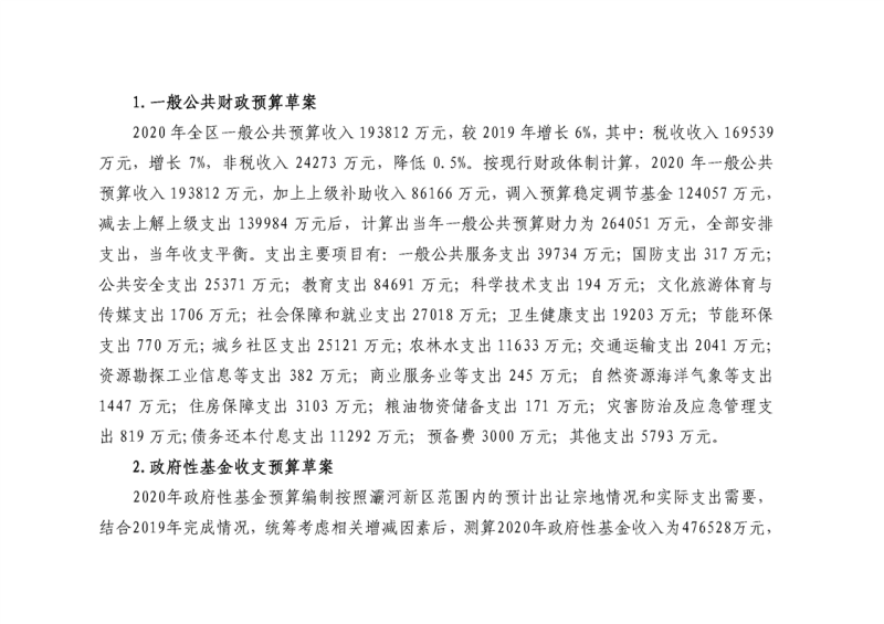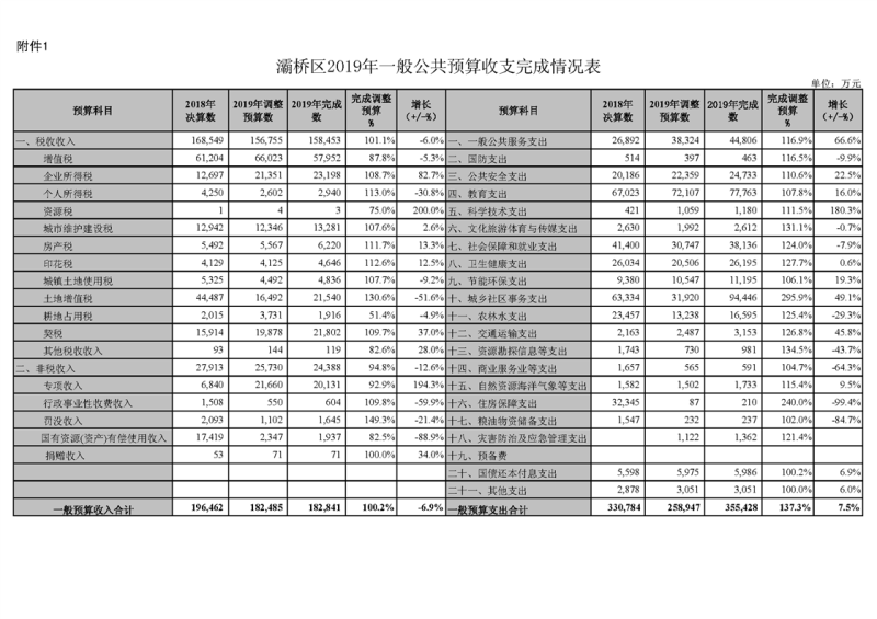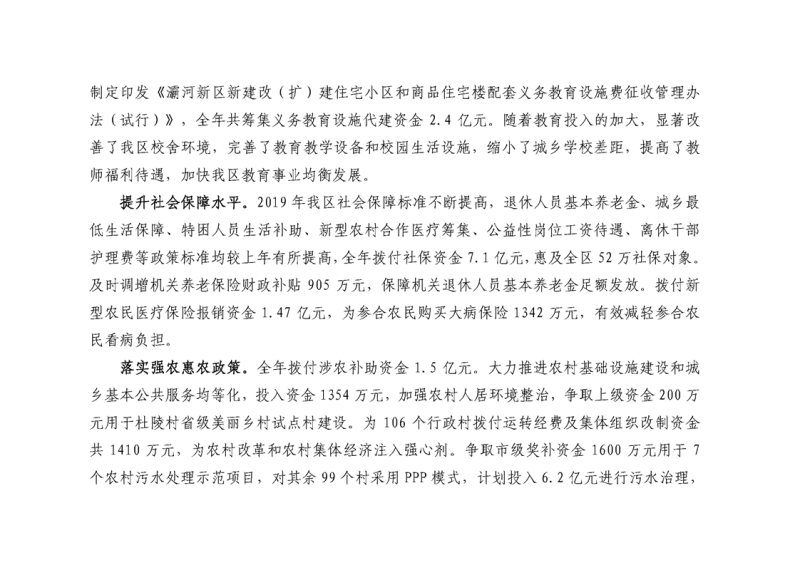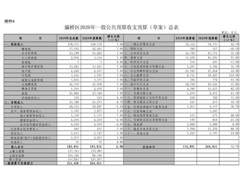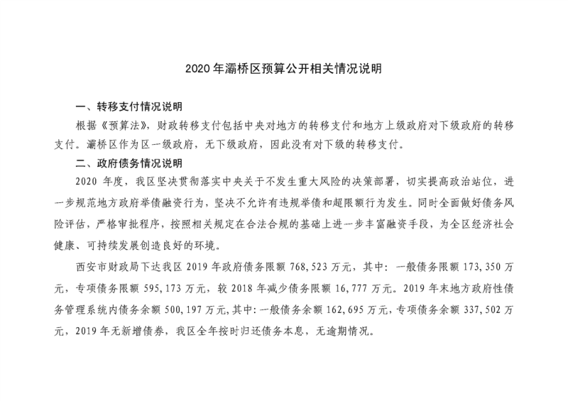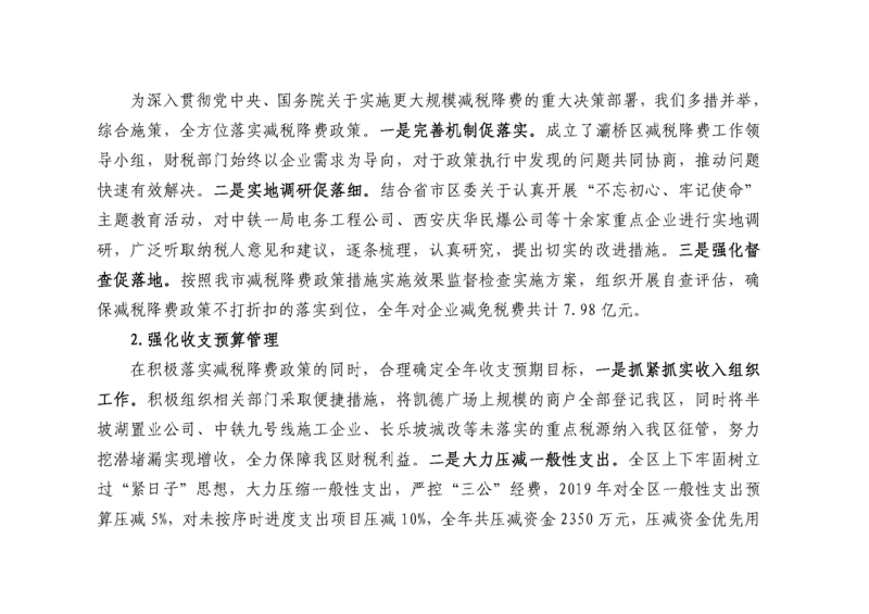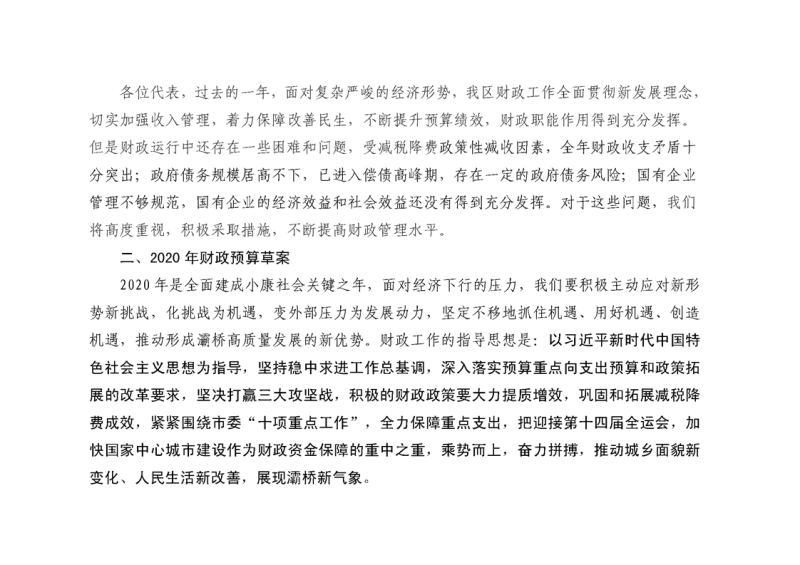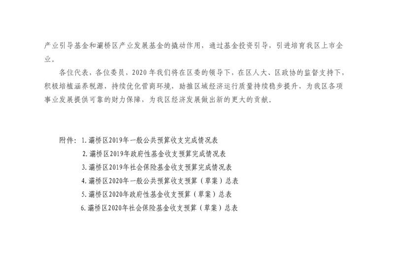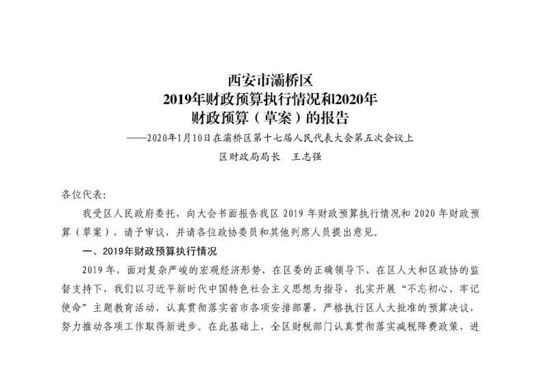 西安市灞桥区2019年财政预算执行情况和2020年财政预算(草案)的报告