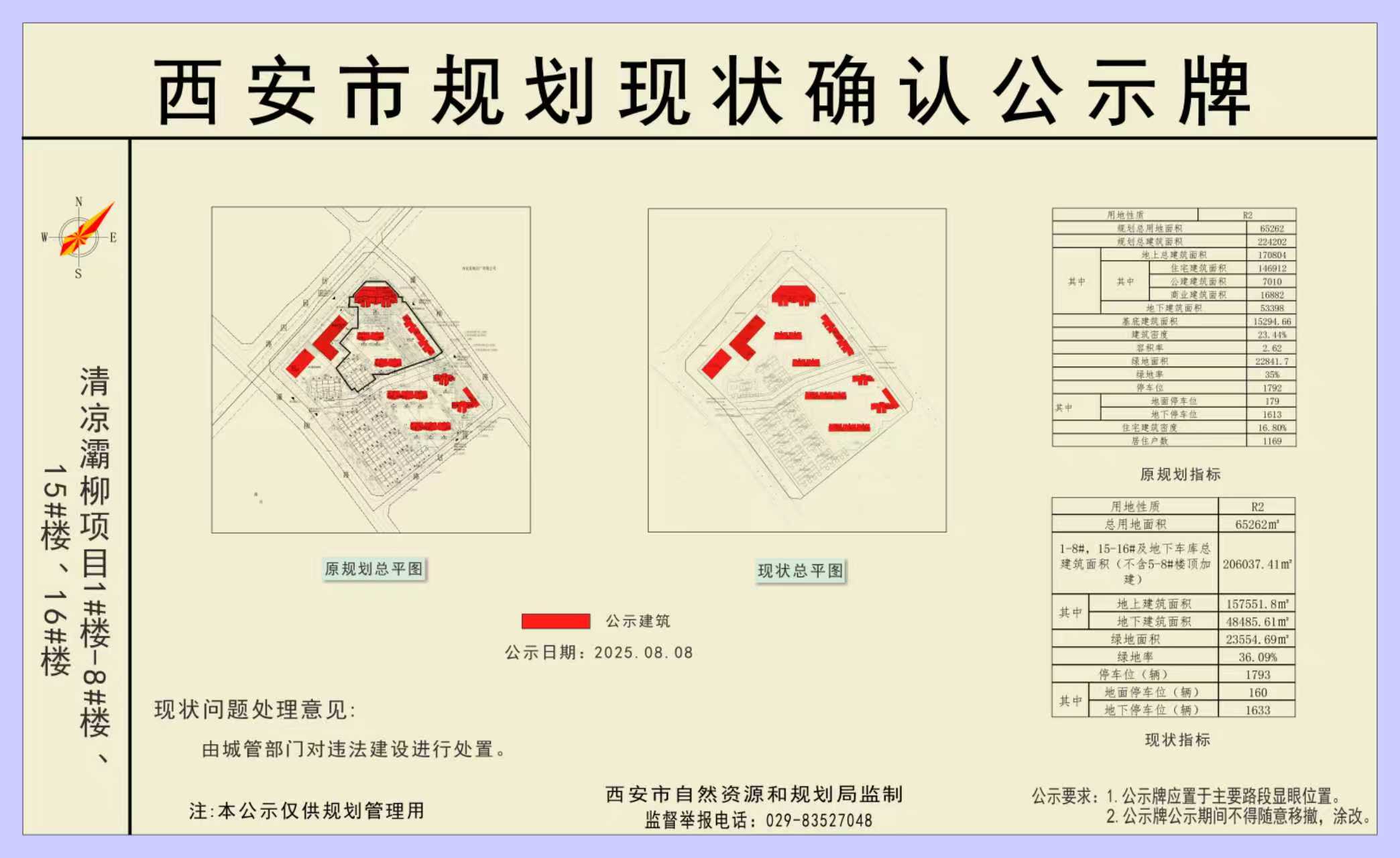 清凉灞柳项目位于西安市纺园四路以南,灞柳一路以东,灞柳二路以西,建设单位为西安建工大唐灞柳建设项目开发有限责任公司。为推进房产证手续办理,现将拟规划现状确认内容公示如下: