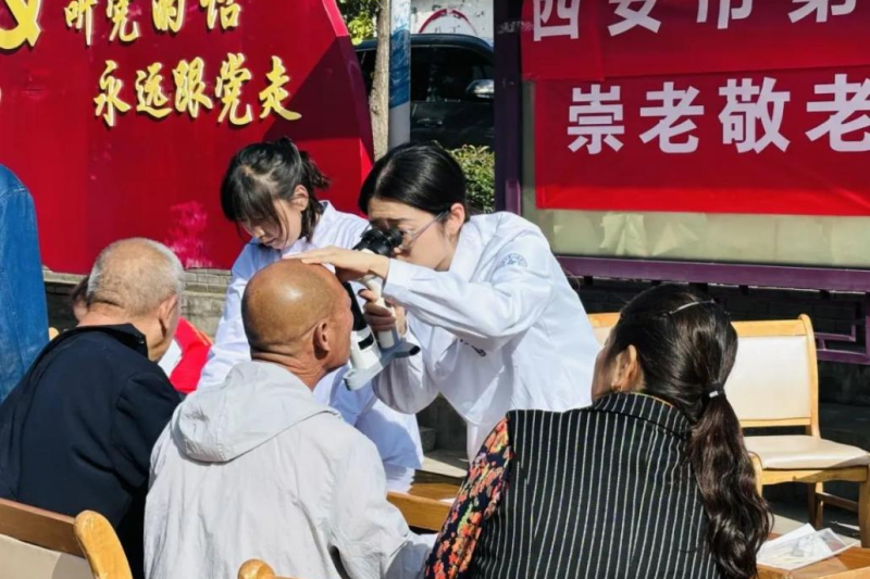 爱尔眼科志愿服务队、西安市第九医院志愿服务队、西安郭氏正骨的医护人员等认真细致地询问了老年人的病史及治疗情况,有针对地提出治疗方案,并对前来咨询的居民提出了科学、合理的健康指导。