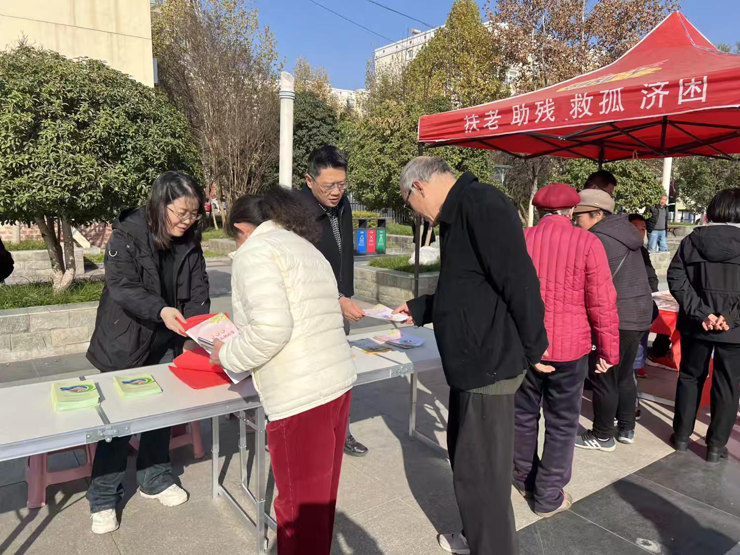 政策宣传区同样热闹,工作人员围绕社区群众关心的养老服务、老龄补贴、社会救助、志愿服务等政策内容,通过发放宣传手册、一对一讲解等方式,向群众详细讲解政策内容及志愿者招募流程。同时,还向群众普及防范养老诈骗、理性购买福利彩票等知识,切实提升基层群众的获得感安全感。