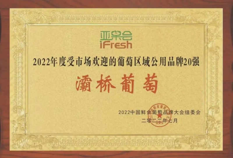 说起高品质葡萄,不得不提的就是“灞桥葡萄”,作为国家地理标志产品,灞桥区有万亩葡萄园,年产鲜果2万吨,由于地域自然条件优越,这里十分适合葡萄的生长,在本次中国农学会葡萄分会,与iFresh亚果会联合主办的,2022中国鲜食葡萄品牌大会线上论坛中,“灞桥葡萄”不负众望荣获2022年度受市场欢迎的葡萄区域公用品牌20强。