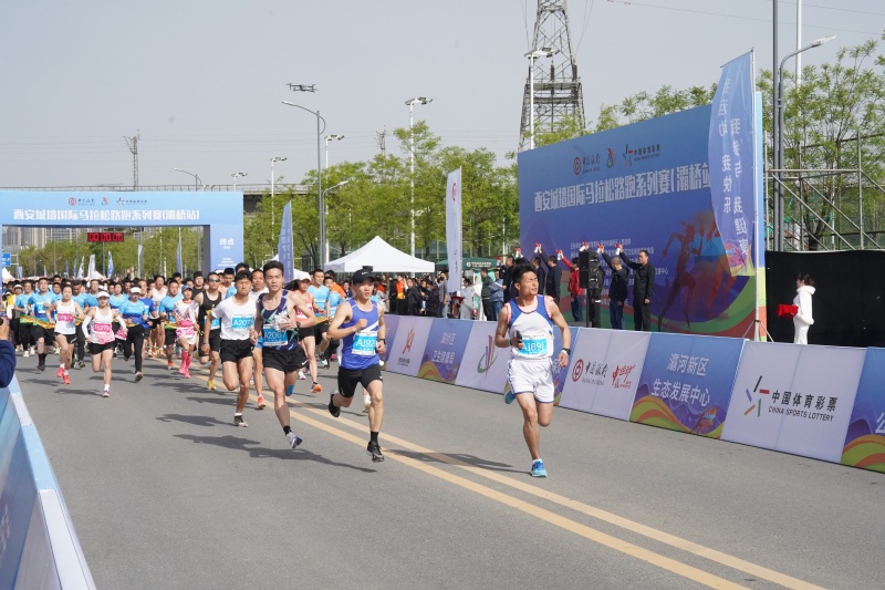 西安城墙国际马拉松路跑系列赛(灞桥站)线下赛将灞河左岸生态公园民生驿站设为起终点,全程10公里。比赛当天,2000多名跑友齐聚起终点,在跟随专业教练进行赛前热身的同时,还欣赏了精彩的文体表演。