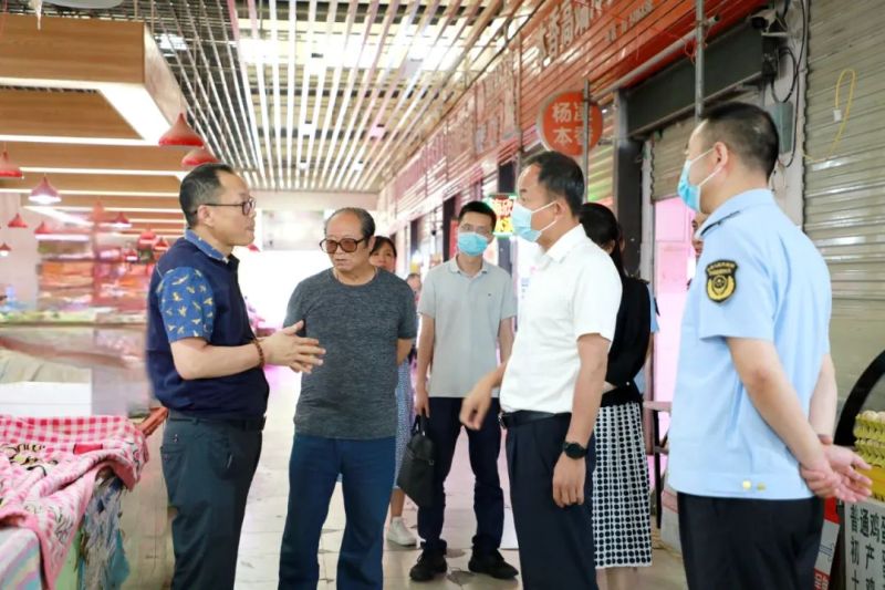 在香王农贸市场,孙见林副区长实地查看市场环境卫生、肉制品储存、价格及计量等情况,与市场负责人深入交流,详细了解市场运营、安全生产等工作,要求市场开办方要切实履行主体责任,加大日常自查管理,坚守安全底线,狠抓食品安全,规范经营行为;要求监管部门加强日常监督检查,维护良好市场秩序,为市民营造一个安全放心的节日消费环境。