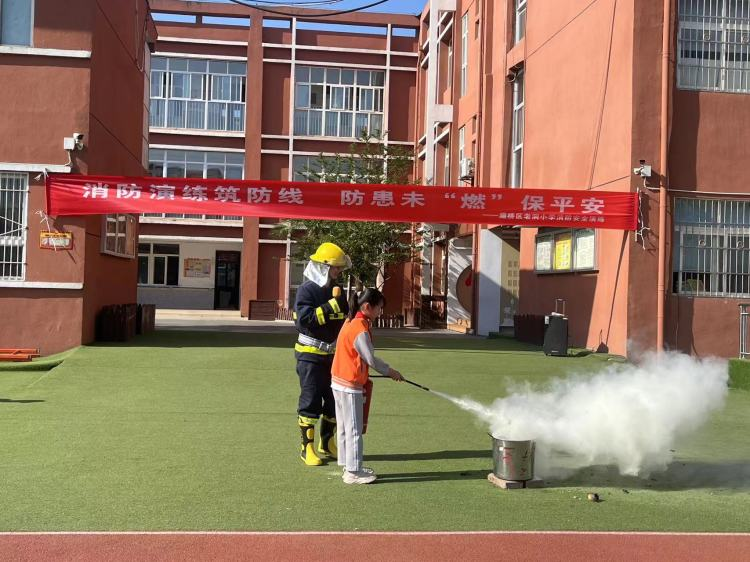 辅导员孙晓毅老师为全校师生讲解灭火器的使用方法和注意事项,随后,各班学生代表用灭火器进行灭火实践。现场灭火操作。让全体师生明确发生火灾或危险时的正确应对策略,进一步熟练掌握消防灭火器的正确使用方法。