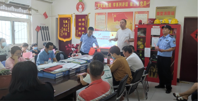 2022年8月10日下午,纺织城街道五环社区邀请驻片民警和消防培训中心教官在总区会议室对三十多家商户及社区工作人员进行了防诈反诈培训和“意识大于防范,责任大于落实”的消防安全知识培训。