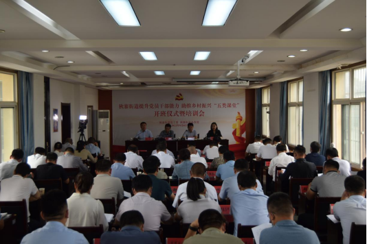 为深入贯彻新时代党的组织路线和党中央关于实施乡村振兴战略的决策部署,认真落实省市区委关于抓党建促乡村振兴和区委作风建设专项行动有关要求,着力提高农村基层党组织的组织力和战斗力,筑牢战斗堡垒、强化队伍建设、助力乡村振兴,狄寨街道加强党建引领,结合地区实际,于2022年9月8日召开“五类课堂”提升党员干部能力助推乡村振兴开班仪式暨培训会。会议特邀请灞桥区委组织部日常工作负责同志辛锋涛参加开班仪式并讲授党课,街道党工委书记答小迎做动员讲话,狄寨街道党工委副书记、办事处主任秦凡主持,街道领导班子全体成员、科室负责人、各村党支部书记、驻村干部、第一书记和部分党代表共计60余人参加会议。