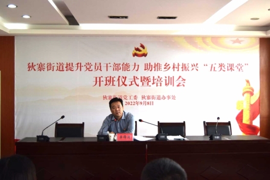 为深入贯彻新时代党的组织路线和党中央关于实施乡村振兴战略的决策部署,认真落实省市区委关于抓党建促乡村振兴和区委作风建设专项行动有关要求,狄寨街道结合地区实际,以强化党的组织、锤炼干部队伍、培育振兴动力为目标,创新“五类课堂”。2022年9月8日,灞桥区委组织部日常工作负责同志辛锋涛赴狄寨街道,与街道领导班子全体成员、科室负责人、各村党支部书记、驻村干部、第一书记和部分党代表齐聚一堂,开启了“五类课堂”的第一课。