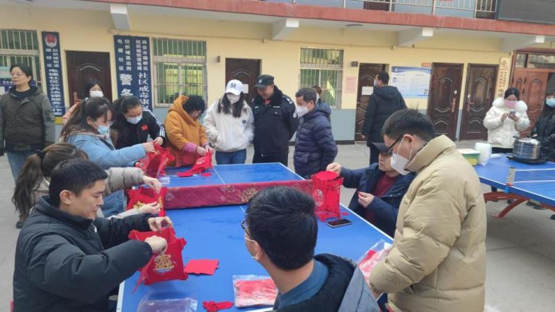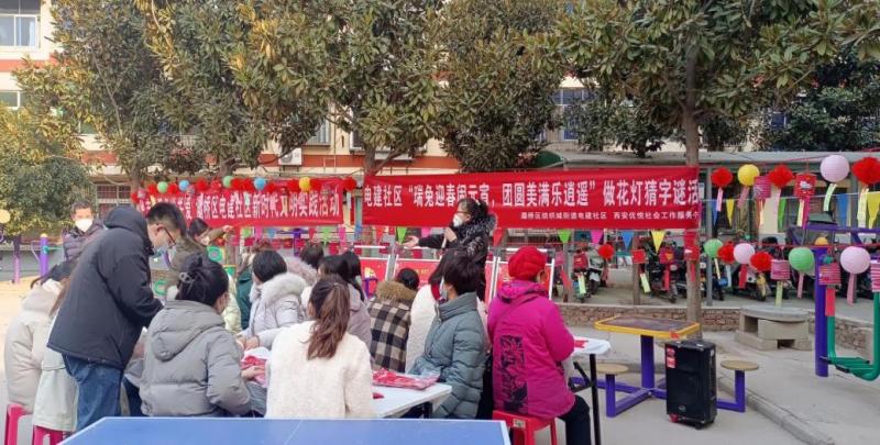 在元宵节来临之际,为丰富居民文化生活,加强对传统文化的了解,纺织城街道电建社区于1月31日上午在社区活动广场开展“瑞兔迎春闹元宵,团圆美满乐逍遥”做花灯猜字谜活动,驻地单位、小区居民、物业等共计50余人参加了本次活动。