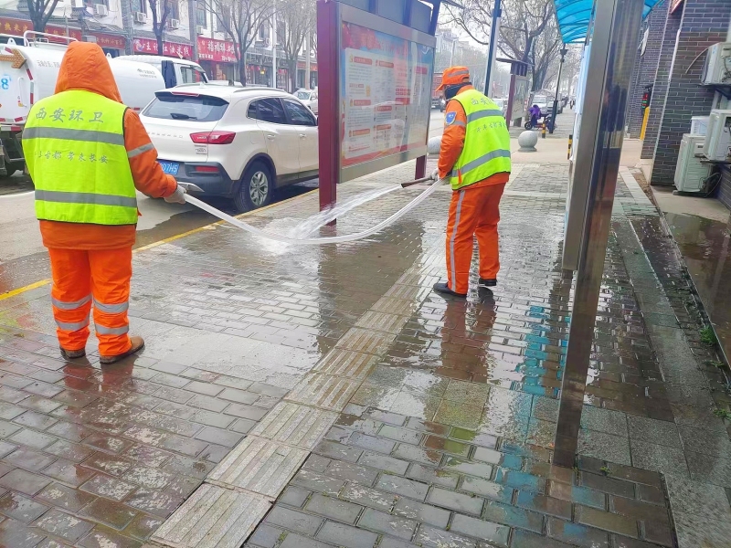 组织112名保洁员,对水安路、环镇北路、东月路及白鹿仓周边进行全面清洁。保洁人员对沿路宣传栏、公交站牌、垃圾箱等基础设施进行擦洗,对绿化带、道路死角垃圾进行清扫。街道商户主动参与,清理商铺门口堆放的垃圾、杂物。累计擦洗门店94家,清扫道路11.9公里,清运垃圾15车。