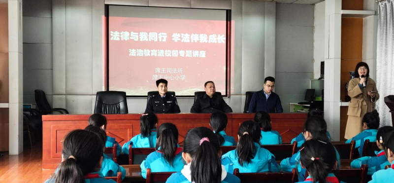 为全力保障辖区校园安全,进一步增强广大师生的法治观念,提高学生的法律意识和自我保护意识,2月28日下午,席王司法所走进席王中心小学,开展“法治进校园 ”普法宣传活动,通过法治讲座、案例讲解、有奖竞答等方式,为小学五年级150余名学生上了一堂别开生面的普法专题讲座。