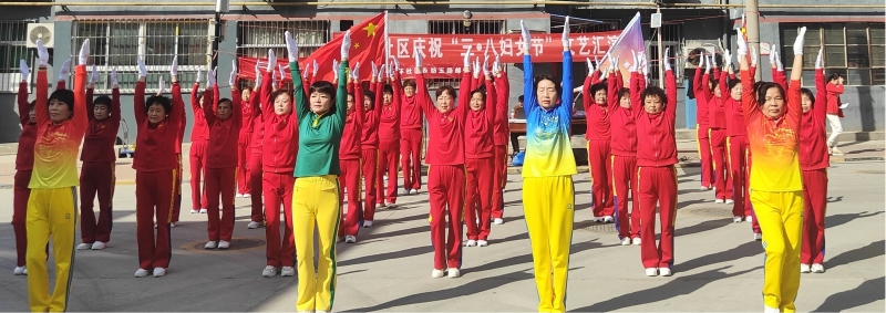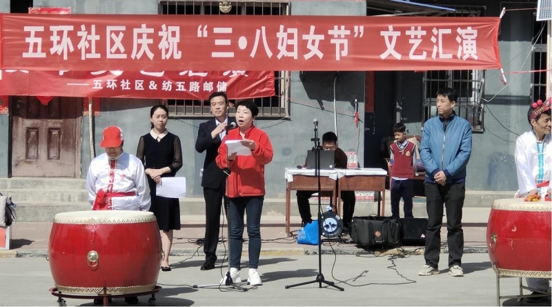 活动现场,五环社区党总支书记、居民委员会主任发表了热情洋溢的讲话。“祝愿所有的女同胞,芳华自在、笑靥如花。”纺织城街道综合保障服务中心(退役军人服务站)负责人宣布“五环社区庆三八国际劳动妇女节文艺汇演活动正式开始”。