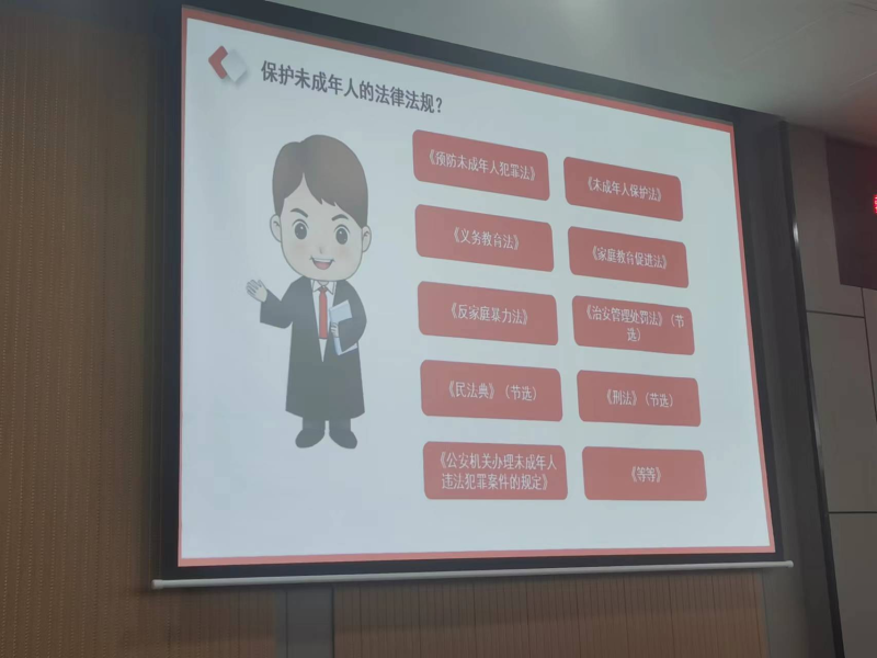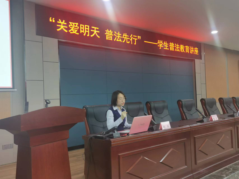 宣讲现场,杜丹律师以“法律与我们的关系?”为主题,讲述了《中华人民共和国民法典》《中华人民共和国未成年人保护法》中与学生密切相关的法律条文,主要从校园欺凌、寻衅滋事、帮信罪等表现形式和实际危害进行深入讲解,并运用通俗易懂的方式列举身边的真实案例,引导同学们用法治知识武装头脑。并告诫同学们要树立自我保护意识,不轻信他人、不进入不适宜的场合、不将自己处于危险的境地,树立正确的世界观、人生观、价值观。会后,杜律师与同学们进行互动交流,现场提问法治问题并解答,巩固了授课内容。
