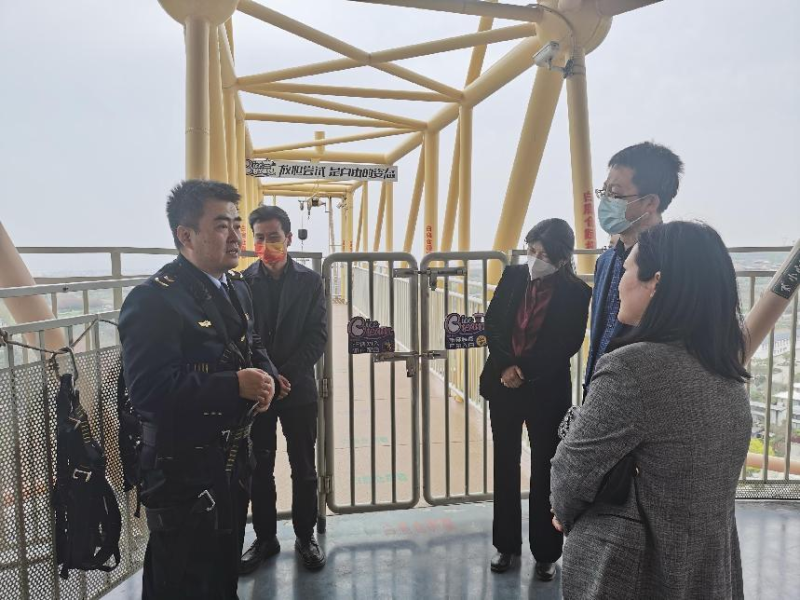 随后,调研组一行分别到景区游客服务中心、食品经营街区以及特种设备运营区域进行了现场检查,对投诉举报电话公示、物价公示等情况进行了现场指导。