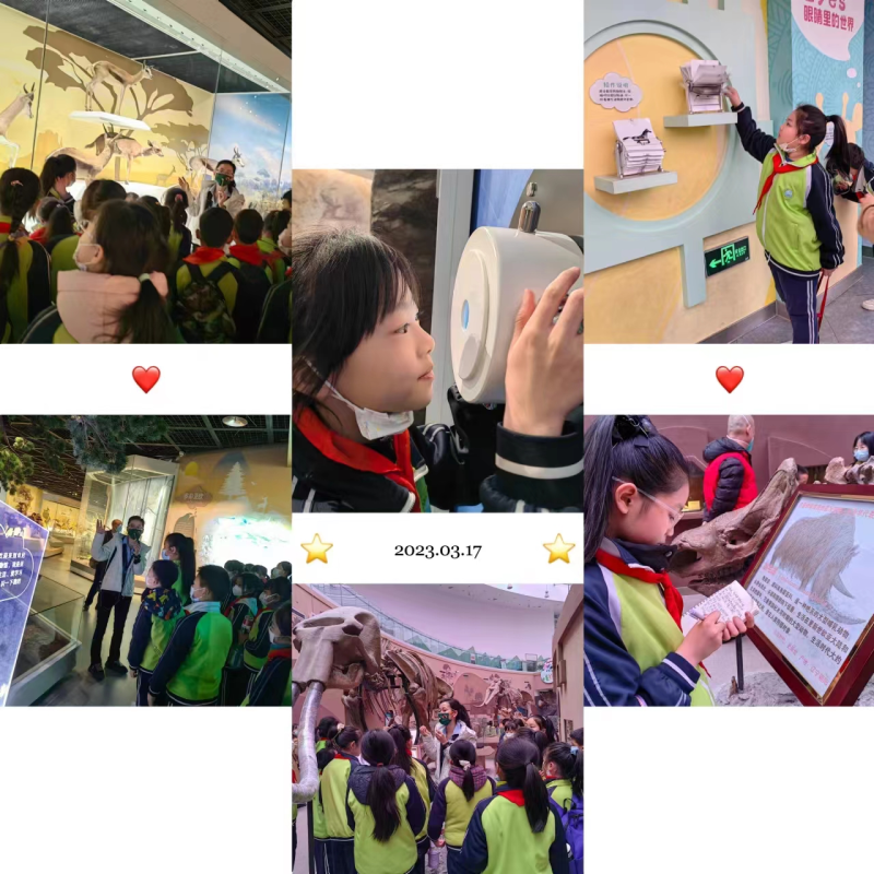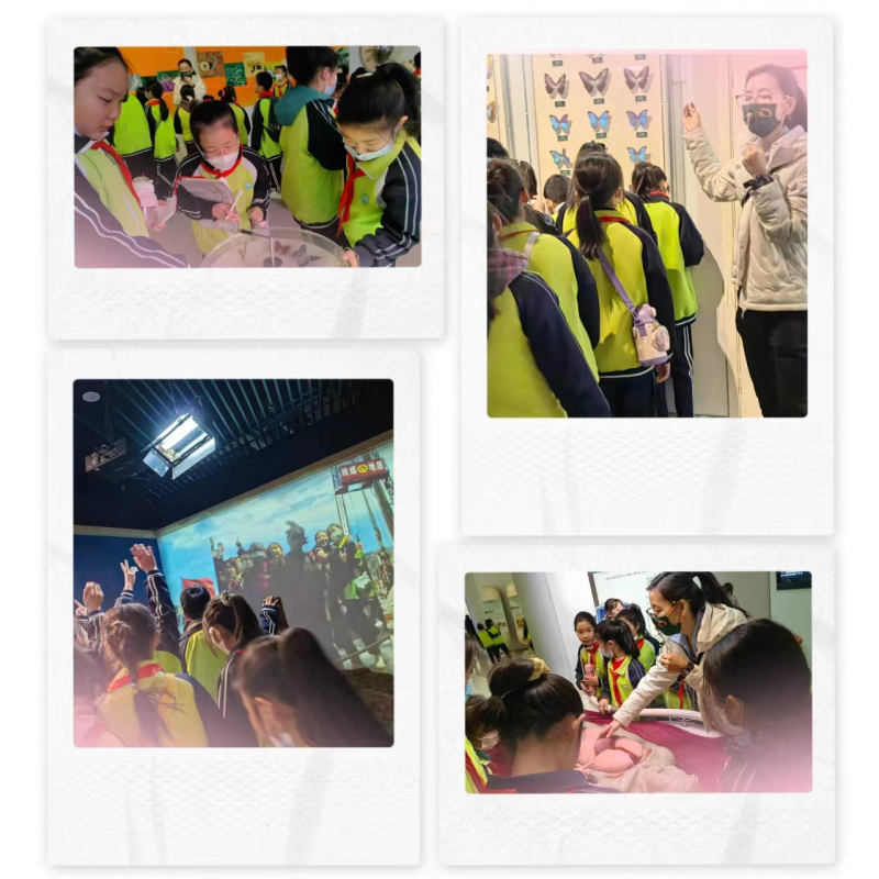 在博物馆讲解老师引领下,同学们先后走进了贝林博物馆展厅、地质万象、古生物长廊、神奇秦岭、昆虫王国、生命之光展厅、珍惜世界动物展厅,观看了大熊猫、朱鹮等230余种珍稀动物标本,鱼龙、翼龙、马门溪龙、乌龟、蜻蜓等上亿年的古生物化石,还有珍贵的植物标本独叶草等。同学们近距离触摸到恐龙化石复制品,也仔细观察到图案精巧的蝴蝶标本、结构奇特的地质矿石等。