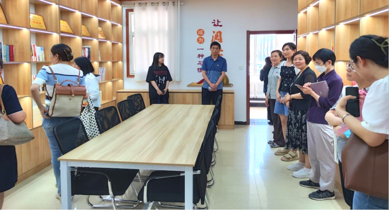 调研组一行先后参观了电厂社区便民服务中心、图书阅览室、家长学校、社区活动室等阵地功能室,了解社区氛围营造并查看档案材料,并与电厂社区家长学校校长程根梅进行了亲切的交谈。