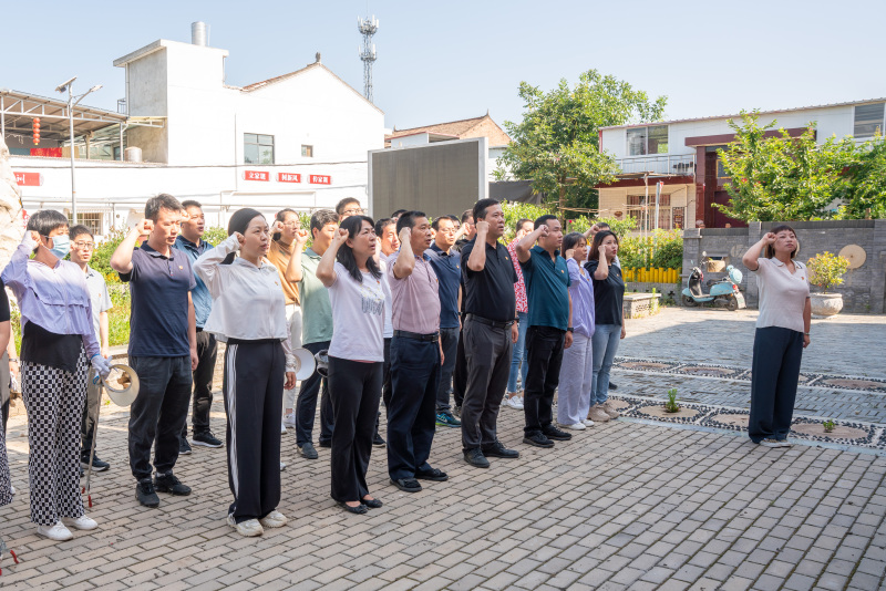 清扫结束后,参与活动的全体领导、党员干部在杜陵村党群服务中心前重温入党誓词,激励全体党员干部在新征程上一往无前、顽强拼搏,在自身岗位上敢作敢为、开拓进取。真正做共产主义远大理想和中国特色社会主义共同理想的坚定信仰者和忠实践行者,永葆共产党员本色,将个人理想融入实现中华民族伟大复兴的事业,以敢为人先的勇气、百折不挠的韧劲、踏石留印的精神,前赴后继、攻坚克难,共同书写中华民族千年历史上最恢弘的史诗。