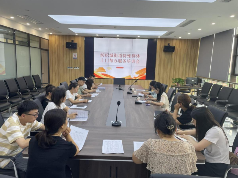 2023年8月8日上午,纺织城街道召开特殊群体上门帮办服务工作培训会,辖区14个社区(村)帮办工作人员、机关业务科室工作人员及街道党群服务中心全体干部参会。