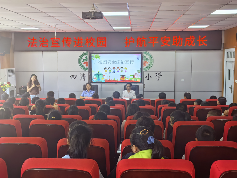 牛律师通过解读《中华人民共和国未成年人保护法》、《中华人民共和国道路交通安全法》、以案释法和播放法治案例视频等方式,引导学生初步了解法治知识,初步树立法治意识,通过实践感知生活中的法、身边的法,养成尊法、学法、守法、用法的行为习惯 。牛律师还从防电信、网络诈骗与预防和校园欺凌等多个方面给学生们进行讲解,用生动的案例使学生们知道校园欺凌带来的危害,鼓励孩子们勇敢的对校园欺凌和侵害说“不”!
