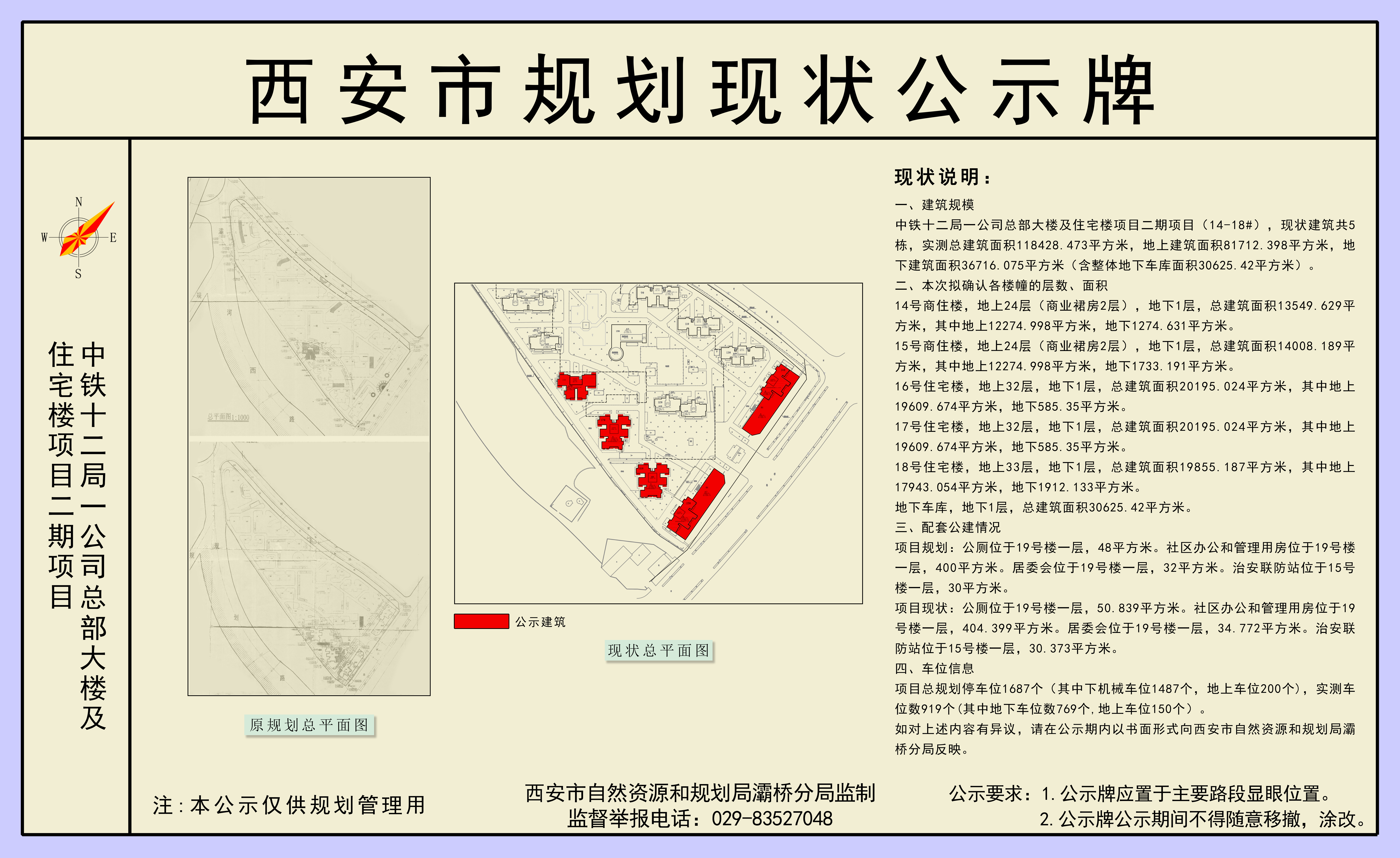 中铁十二局一公司总部大楼及住宅楼项目(铁建水岸雅苑)位于柳雪路以西、祥云路以北,建设单位为西安泰丰房地产开发有限公司,经灞桥区处理房屋办证遗留问题领导小组同意,现将拟规划现状确认内容公示如下:
