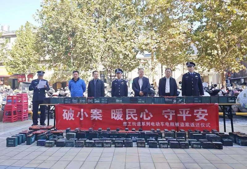 10月22日,公安灞桥分局席王派出所举行涉案财物返还仪式,将价值8万余元共200余块被盗电瓶现场返还给受害群众。