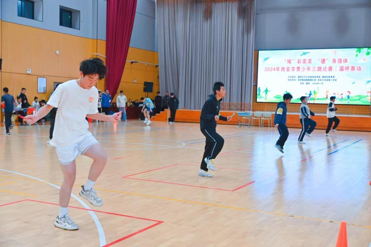 “绳”彩奕奕,“毽”身强体。为活跃灞桥区中小学生校园文化生活,增强学生身体素质,掀起冬练热潮,11月28日,2024年西安市青少年“三跳”比赛(灞桥赛区)在灞桥区东城第二学校体育馆举行,共有来自辖区44支中小学代表队约1870人次参加。
