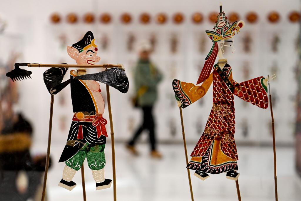 1月7日,游客在非遗年货集市上了解皮影技艺。新华社记者 邹竞一 摄