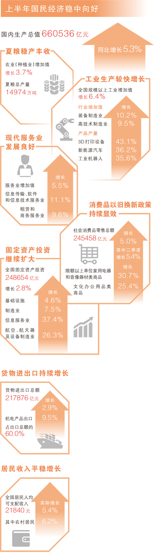 上半年GDP同比增长5.3%,比去年同期和去年全年均提升0.3个百分点