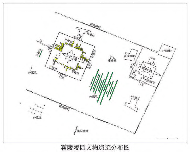 自高祖长陵始,西汉帝陵陵园外设置陪葬墓区已成定制。如渭北咸阳原上的早、中期帝陵,其陪葬墓基本位于陵区东(北)侧区域,司马门道两侧。资料表明,霸陵陵区共发现了2处陪葬墓区,一处位于今狄寨街道西北3000米的马家沟村附近,另一处位于江村大墓西南约4公里的新华村、栗家村附近。当然,如果仔细梳理一下周边片区的考古资料,霸陵陪葬墓的数量远不止已公布的材料所述。