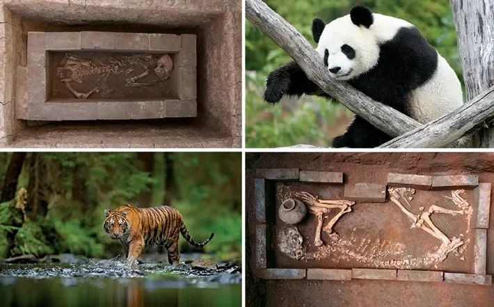 2021年8月至2022年8月,考古工作者共发掘23座动物殉葬坑,发现动物种类共计11个属种,包括鸟类2种和兽类9种,均为珍稀野生动物,出土的动物种类既有现在仍生活在南方东洋界(热带或亚热带)的动物如印度野牛、马来貘和绿孔雀,也有“秦岭四宝”中的三宝——金丝猴、大熊猫、羚牛。其中,虎、马来貘、牦牛、印度野牛在陕西省属首次发现。