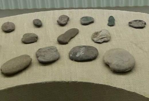 在半坡遗址虽然没有发现渔网的实物,但是出土了320件石网坠。石网坠是绑在渔网下面的,可以使渔网下沉。石网坠几乎占全部渔猎工具数量的一半,网坠都是石头制成的,一般是选取小块扁平的砾石加工而成,两端还会打制出缺口,方便捆绑。同时,半坡遗址还发现了很多陶器上绘有渔网纹的图案。考古学家根据这些现象,推测出半坡人已经会撒网捕鱼了。