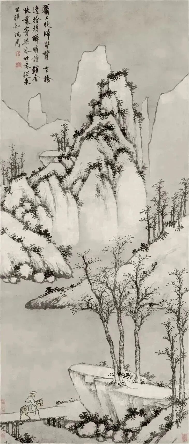 诗人、画家们对灞桥风雪的演绎使“驴子背”成为了踏雪寻梅、觅诗苦吟的代表。让我们一起欣赏几幅带有“驴子背”的《灞桥风雪图》吧~