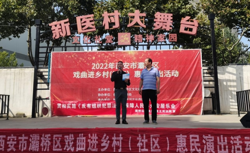 为提高广大群众对反有组织犯罪的社会知晓率,9月22日,席王司法所组织开展灞桥区2022年度“戏曲进乡村(社区)文化惠民演出”活动,在新医村开展以“贯彻实施《反有组织犯罪法》,保障人民群众安居乐业”为主题的普法宣传活动。