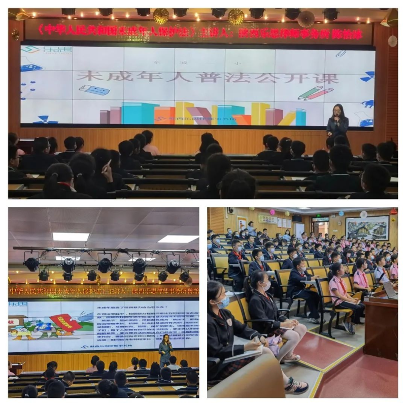 为深化普法教育,推动“法治进校园”活动深入开展,努力营造校园“学法、懂法、守法”的良好氛围,提高广大师生的法律素质和法治意识,有效预防未成年人违法犯罪。9月28日,纺织城司法所邀请陕西乐思律师事务所陈怡冰律师走进东城一小开展《中华人民共和国未成年人保护法》知识讲座。