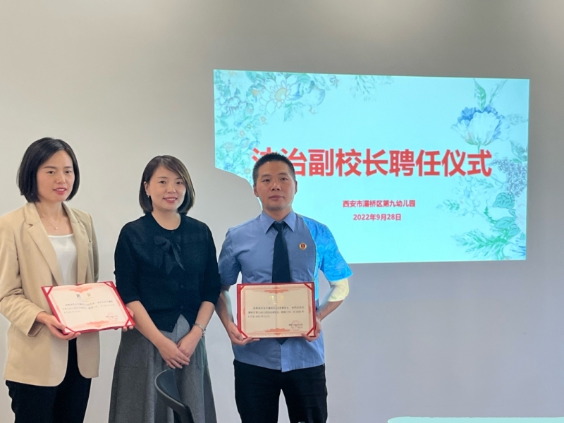 培训开始前,灞桥区第九幼儿园陈园长为区司法局普法与依法治理科科长闫瑾、区检察院干警王羽两位同志颁发了法治副校长聘书。