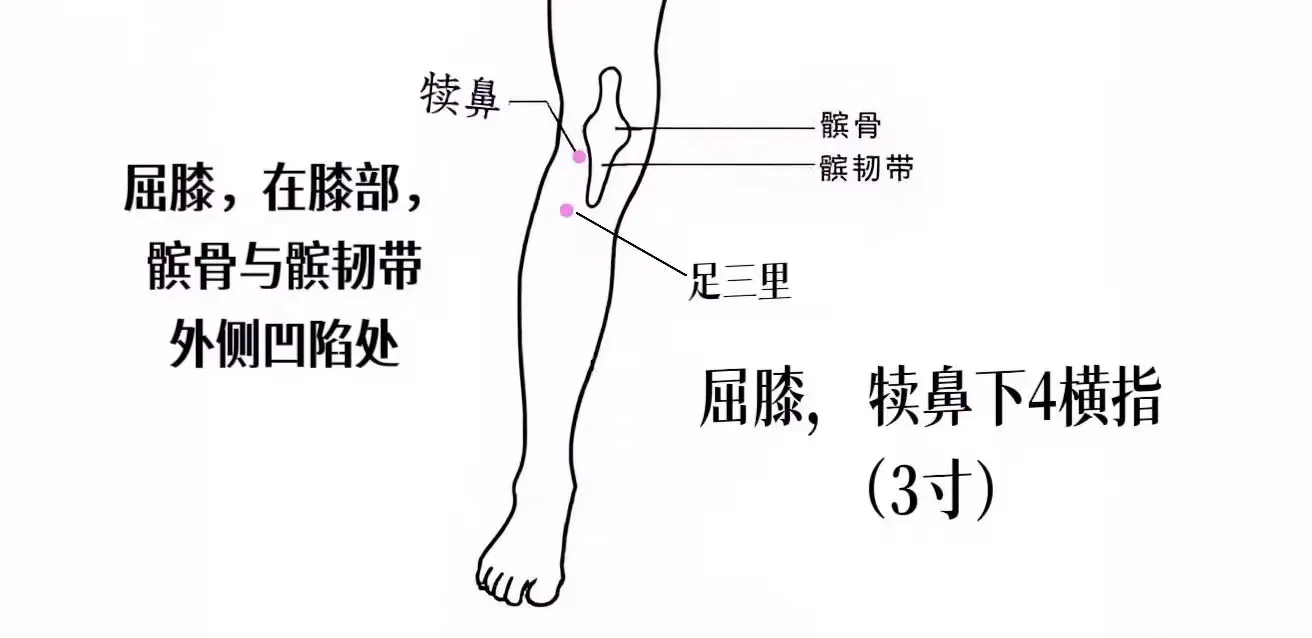 足三里,足阳明腧穴。合穴,胃下合穴。有健脾和胃,扶正培元功效。还可以促进血液循环,延缓衰老。对足膝肿痛、癫狂、热病也有效。