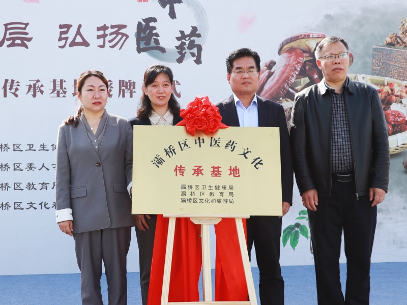 区卫健局局长白莉、区教育局局长曹宏顺、区文旅体育局局长吴小进共同为灞桥区中医药文化传承基地授牌。