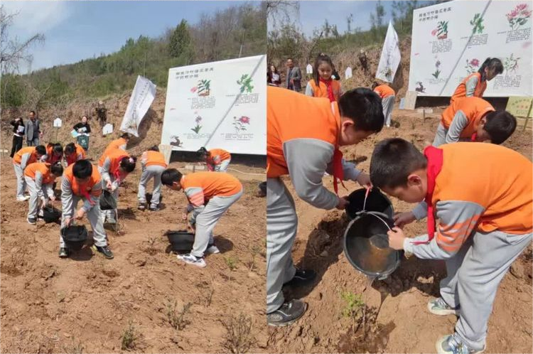 讲解员从基地栽种的苗圃开始,向孩子们介绍了金银花、贝母、黄精、连翘等中药材的外形特征、生长习性、药用价值、炮制方法,介绍了中医药的悠久历史等。为激发孩子们对中草药的兴趣,使孩子们明白中草药从播种到采摘的不易,基地工作人员为孩子们准备了小桶,让他们下田为苗圃浇水,使他们真正体验到了深入田间地头劳动的快乐,感受到了家乡的美丽。