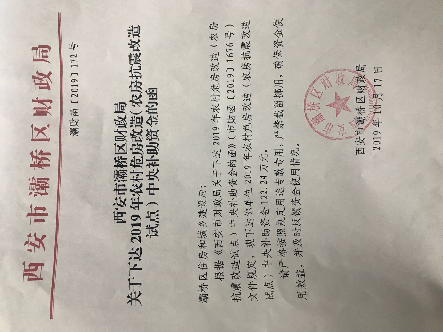 三、资金用途及范围:用于灞桥区农村危房改造、农房抗震改造