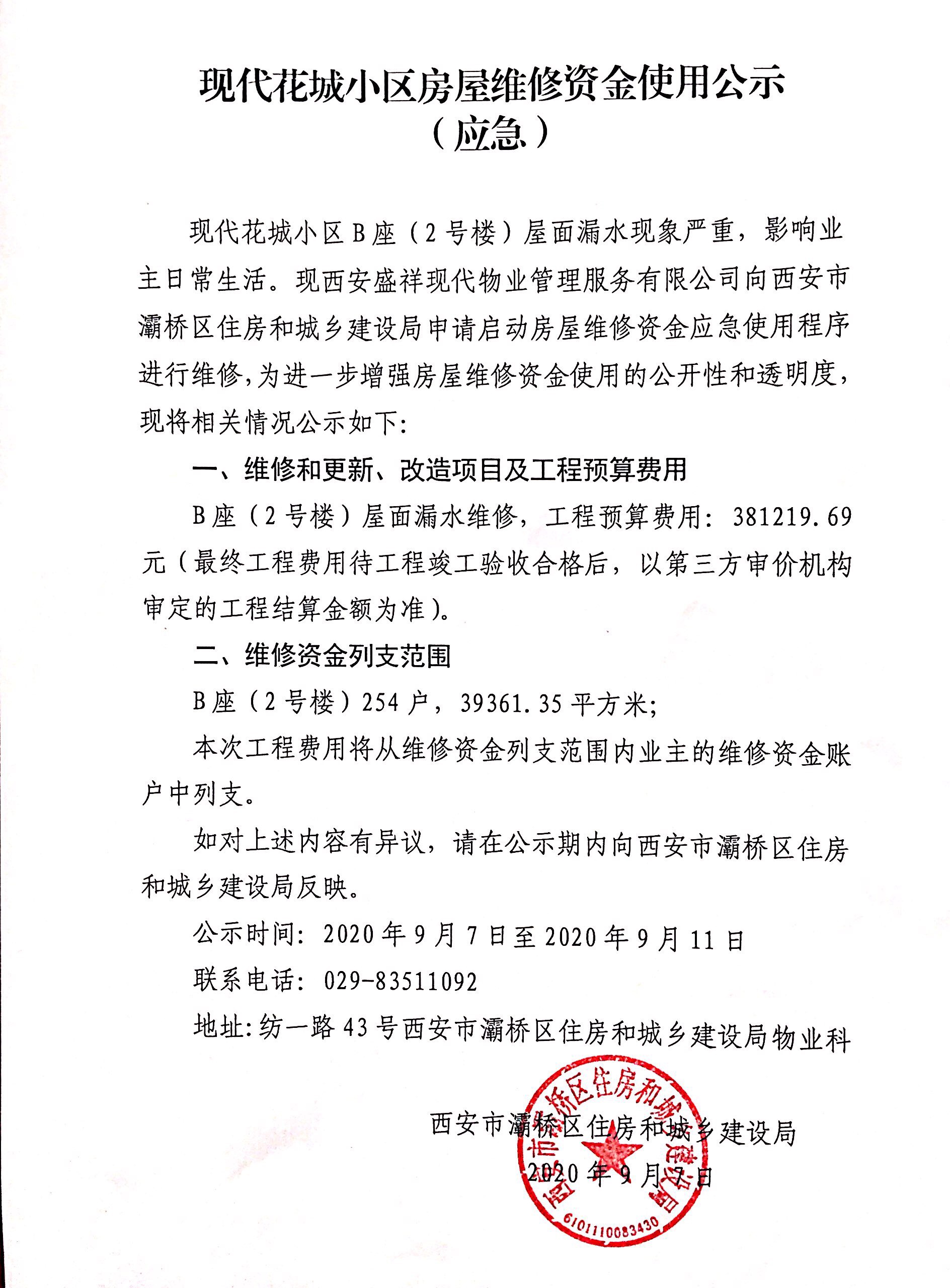 现代花城小区房屋维修资金使用公示(应急)