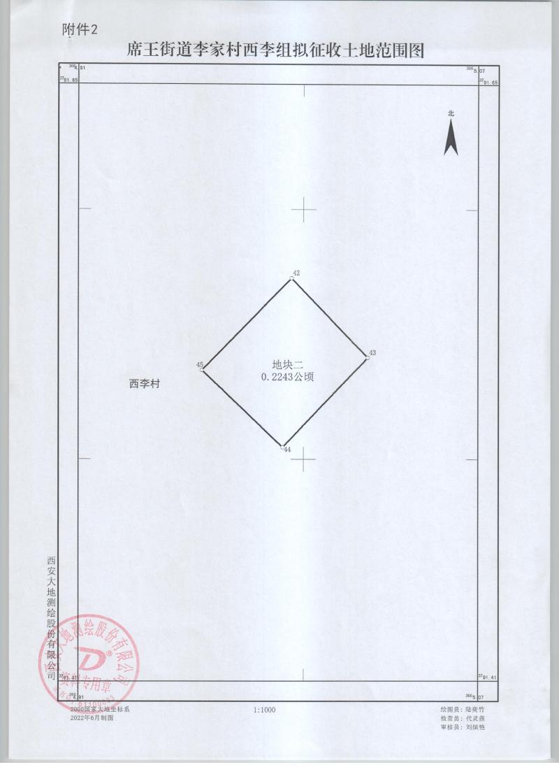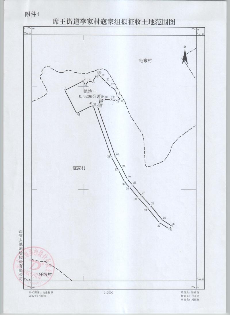 本次拟征收土地位于西安市灞桥区席王街道李家村,拟征收土地面积0.8449公顷,具体范围详见《席王街道李家村寇家组拟征收土地范围图》(附件一)、《席王街道李家村西李组拟征收土地范围图》(附件二)。