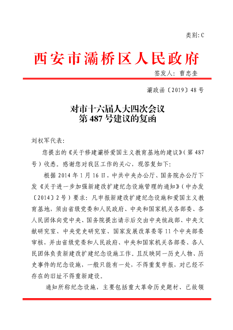 西安市灞桥区政府对市十六届人大四次会议第487号建议的复函